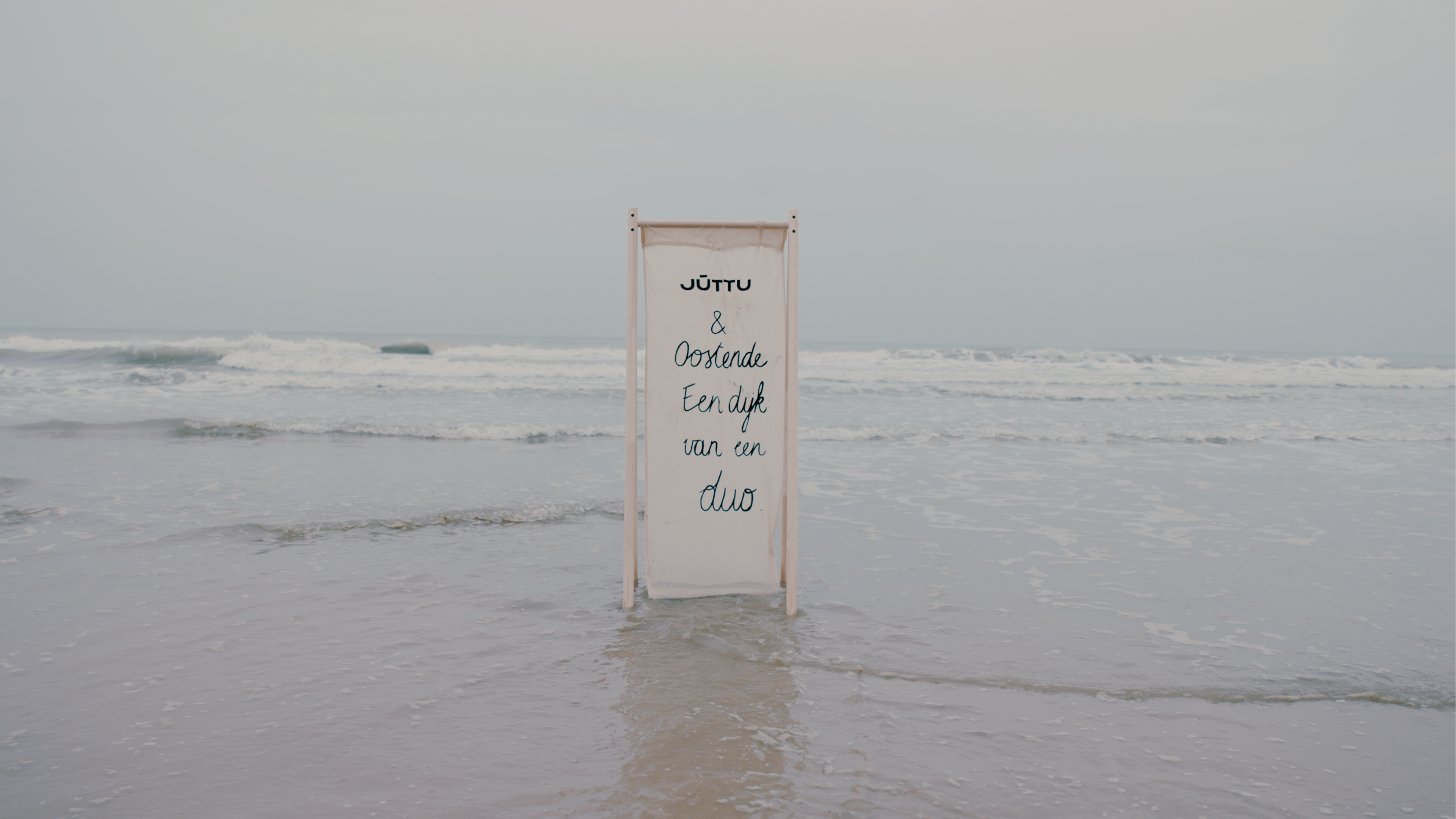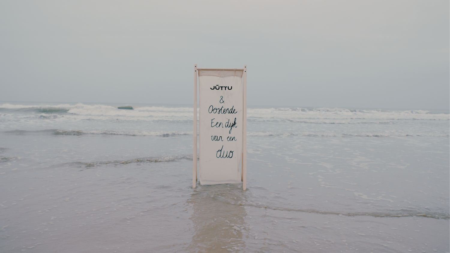 Om de feestelijke opening extra in de spotlight te zetten, lanceerde Juttu een videoproductie die hun liefde voor Oostende mooi in beeld brengt. De quote ‘Juttu x Oostende, een dijk van een duo’ verscheen op een doek dat werd gefilmd op drie iconische locaties: aan de Vistrap, op de dijk bij de Venetiaanse Gaanderijen en zelfs in zee. De video is te bekijken op hun officiële Instagramaccount.